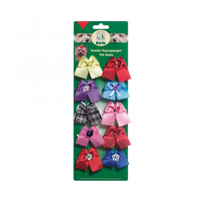 10 Luxus-Hundehaarspangen mit Stoffbesatz in verschiedenen Farben und Designs.